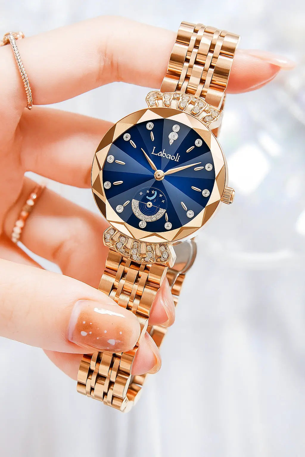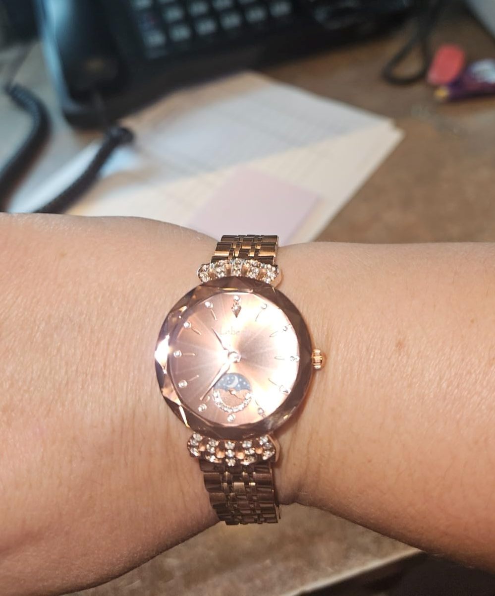 ساعة نسائية فاخرة تجمع بين التصميم العصري واللمسة الكلاسيكية الراقية.